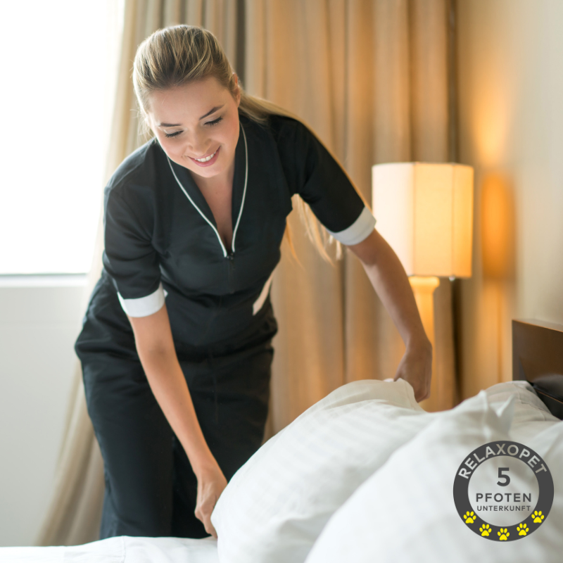 Unsere Partnerhotels verzeichnen durch den Einsatz von RelaxoPet bis zu 35 % weniger Reinigungskosten – weniger Tierhaare, weniger Unruhe, weniger Aufwand.